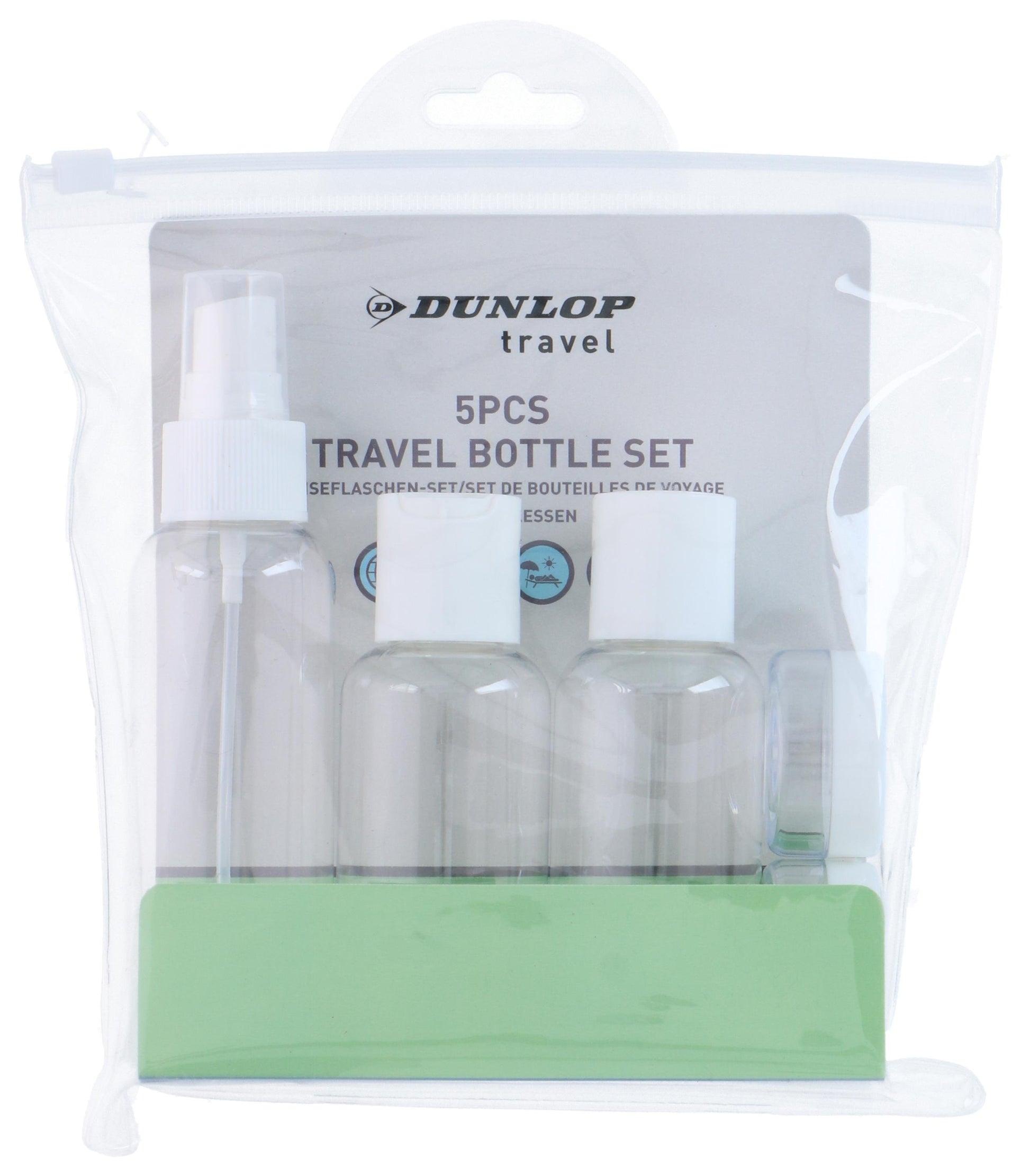 Dunlop 5-delt Reiseflaskesett – praktisk, lekkasjesikkert og godkjent for håndbagasje