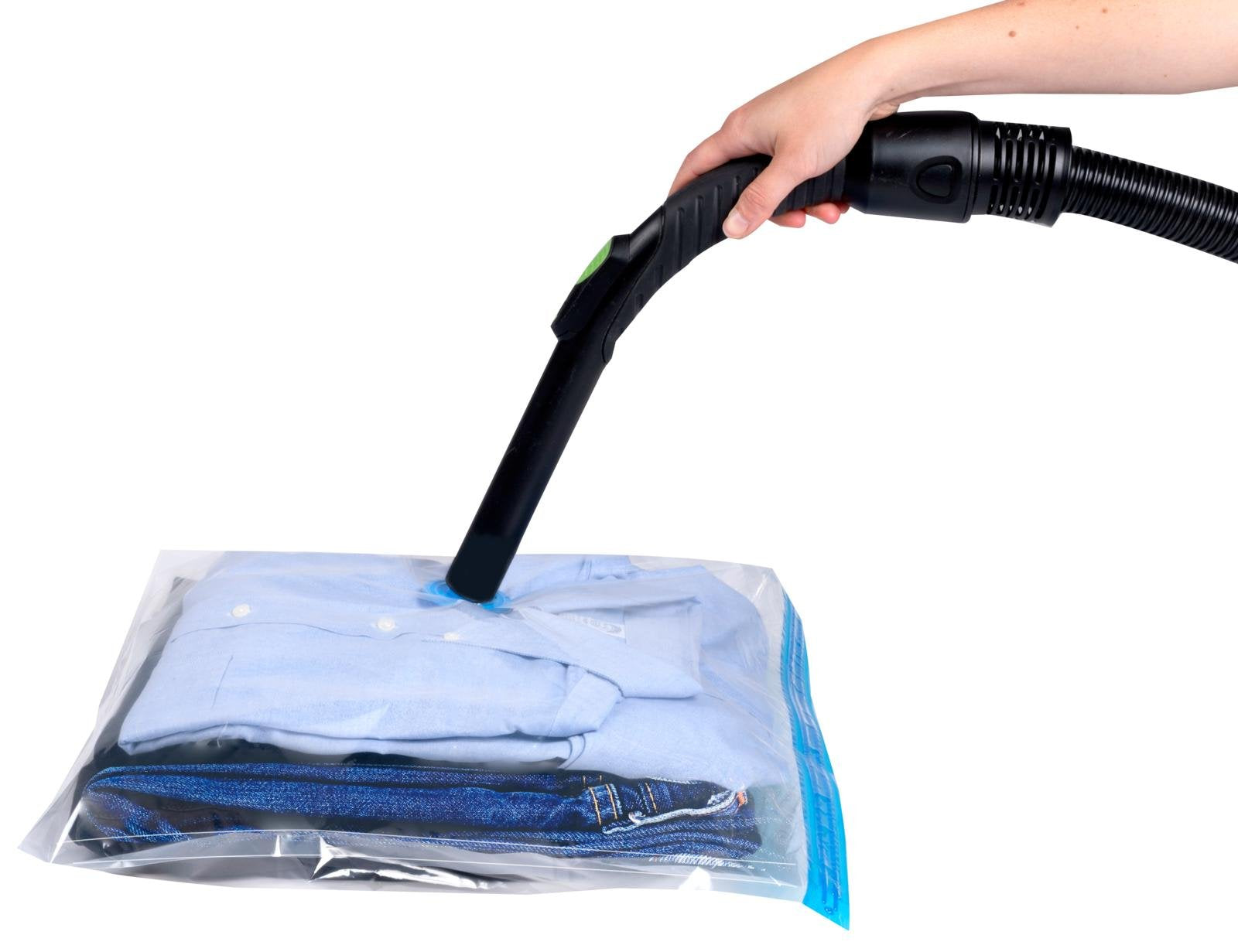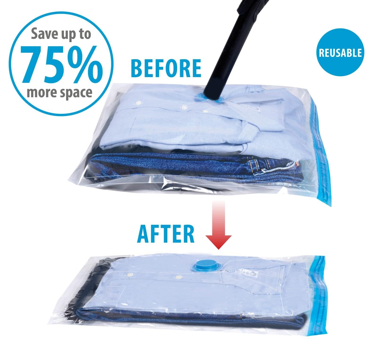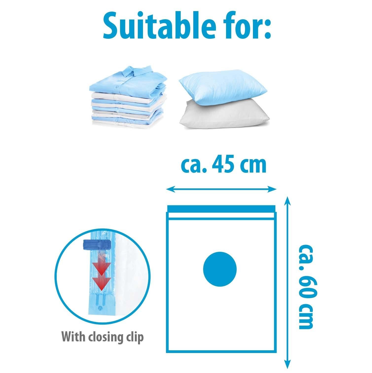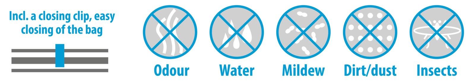 Med beskyttelse mot lukt, vann, mugg og støv holder den eiendelene dine rene og tørre. Den medfølgende lukkeklipsen gjør den enkel å bruke, og den kompakte størrelsen passer ideelt til klær, sengetøy og tekstiler.